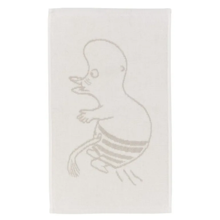 Kos deg i det myke og koselige Mummihåndkleet fra MoominArabia, som måler 30×50 cm og har en ren hvit farge med Mummitrollet som motiv. I historien har Mummifamilien flyttet til en øde øy Mummitrollet og Snorkfrøken bygger drivvedmerker på kolber rundt øya og legger også ut garn for å fange fisk, men lykkes stort sett med å fange tang. Både praktisk og stilig, dette håndkleet fanger en sjarmerende historie fra Mummidalen. Perfekt for både barn og voksne som elsker de magiske eventyrene til Mummiverden.