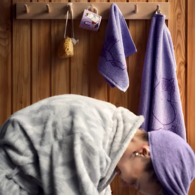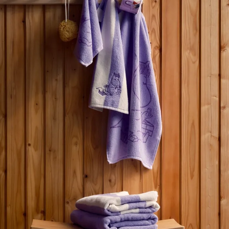 MoominArabia Mummi håndkle 50×70 cm Snorkfrøken lilla gir en myk og koselig følelse til ditt daglige liv. Dette håndkleet er prydet med herlige illustrasjoner av Snorkfrøken som reiser til den franske rivieraen, hvor hun kjøper nye klær og mingler med kjendiser. Til tross for den glamorøse livsstilen, begynner Snorkfrøken snart å lengte tilbake til det enkle livet i Mummidalen. Laget av 100% økologisk bomull, er dette håndkleet både skånsomt mot huden og miljøvennlig.Gir en touch av Mummi-magi og sjarm til ditt hjem, perfekt for alle som elsker Mummi-universet og ønsker litt ekstra glede i hverdagen.