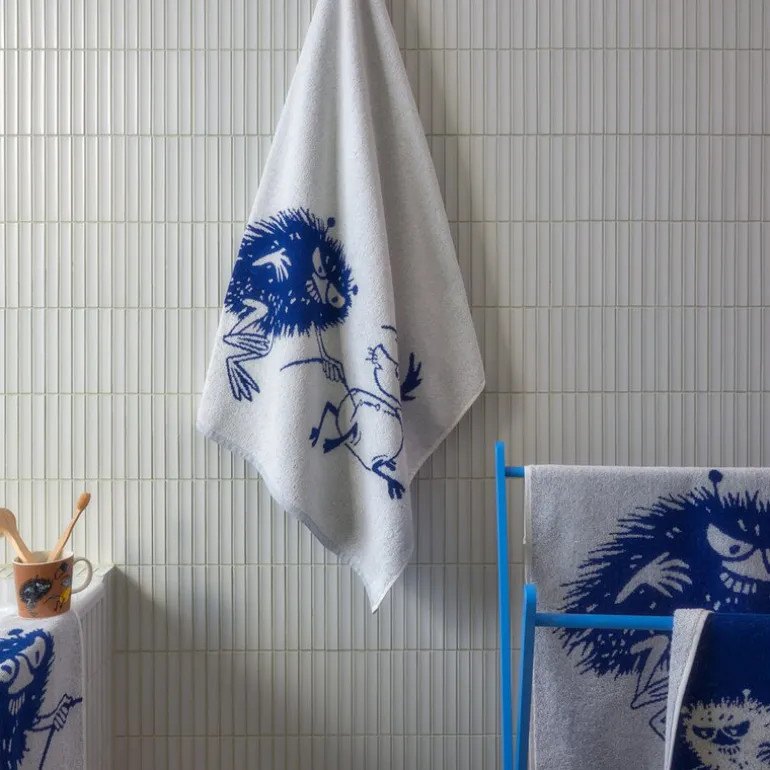 MoominArabia Mummi håndkle 50×70 cm Stinky offwhite gir en myk og koselig følelse til ditt daglige liv. Nyt dette håndkleet, men hold utkikk etter Mummidalens mest kjente skurk: Stinky. Han er en mester i rampestreker, ville planer og tyveri, men til tross for hans rampete handlinger, er Mummifamilien stolt av å være på godfot med ham. Laget av 100% økologisk bomull, er dette håndkleet både skånsomt mot huden og miljøvennlig. Gir en touch av Mummi-magi og humor til ditt hjem, perfekt for alle som elsker Mummi-universet og ønsker litt ekstra glede i hverdagen.