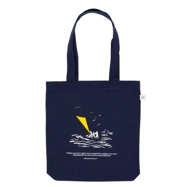 Mummi handlenett fra Nordicbuddies er en funksjonell og elegant løsning for både shopping og daglig bruk. Med sitt marineblå design og en nydelig illustrasjon av Mummitrollet i havet på forsiden, er dette nettet et stilfullt tillegg til din hverdag. Vesken måler 38,5 x 42 cm og er laget av 100 % økologisk bomull, som gir en slitesterk og komfortabel følelse.