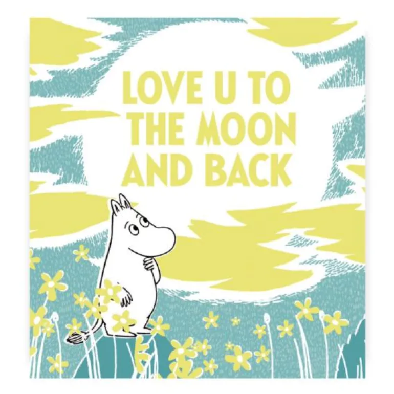 Mummi kort dobbelt «Love you to the moon and back». Små doble Mummi-kort med konvolutt. 7,5 x7,5 cm. Perfekte til små og store gaver.
