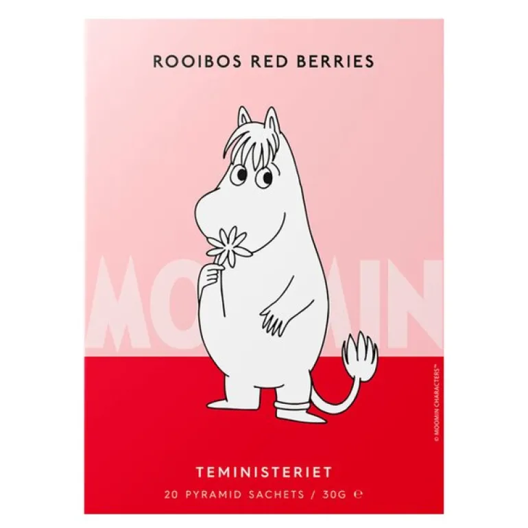 Esken inneholder 20 pyramideposer med rooibos te og røde bær fra Mummi-serien til Teministeriet. Denne koffeinfrie urteteblandingen kombinerer den milde og naturlige sødmen fra rooibos med forfriskende smaker av røde bær og rips. Den gir en deilig og fruktig kopp te som kan nytes når som helst på dagen, uten å forstyrre nattesøvnen.