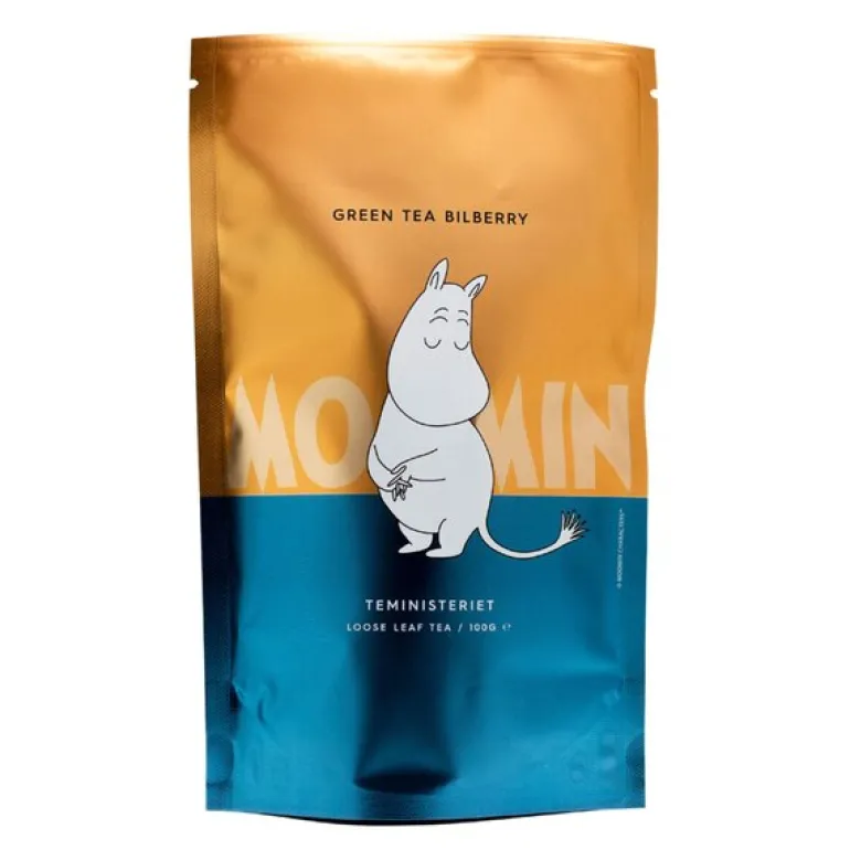 Refill Mummitrollet grønn te blåbær fra Mummi-serien til Teministeriet inneholder 100 gram førsteklasses grønn te kombinert med smakfulle ingredienser som blåbær, kornblomst, solsikke, ringblomst og roseblader. Denne unike blandingen skaper en aromatisk og forfriskende kopp te med naturlig sødme og et hint av blomster. Perfekt for de som ønsker en herlig teopplevelse med smak av sommer.