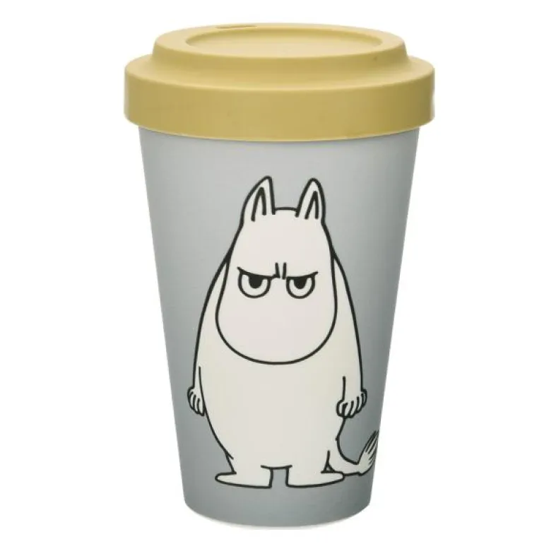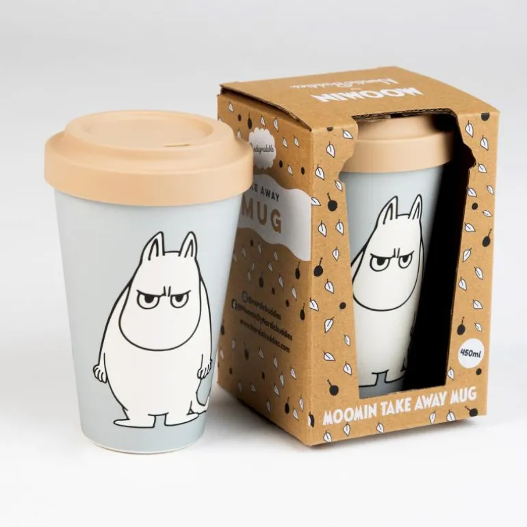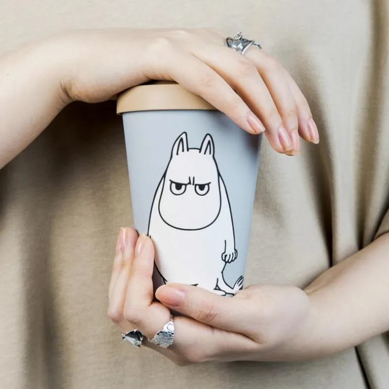 Praktisk og morsomt grått take away-krus med en illustrasjon av Mummitrollet som er usedvanlig sint og sur. Kruset er laget av PLA (polylaktid), som er et fullstendig biologisk nedbrytbart og fornybart materiale. Det ser ut som plast, men inneholder ikke fossilbasert plast i det hele tatt. Lokket og «hylsen» på kruset er laget av silikon. Både materialet i koppen og pappen som brukes i emballasjen, er resirkulerbare. Volum: 450 ml. Pakken inneholder også en «hylse» til kruset som beskytter fingrene dine når du holder på varm drikke. Kruset og lokket kan vaskes i maskin. Krusene må ikke settes i mikrobølgeovnen.