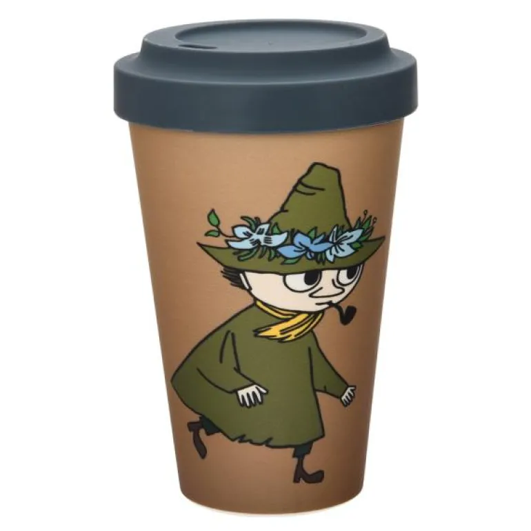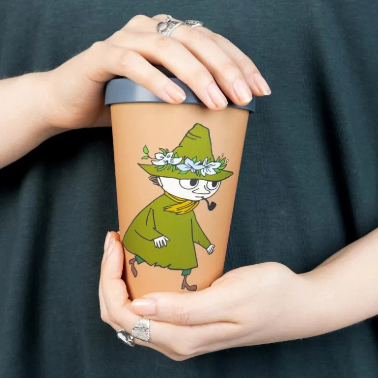 Praktisk, brunfarget takeaway-krus fra Nordicbuddies som holder kaffen eller teen varm! Kruset er illustrert med Snusmumrikken som er på vandring, som vanlig. Kruset er laget av PLA (polylaktid), som er et helt biologisk nedbrytbart og fornybart materiale. Det ser ut som plast, men inneholder ikke fossilbasert plast i det hele tatt. Lokket og «hylsen» på kruset er laget av silikon. Både materialet i koppen og pappen som brukes i emballasjen er resirkulerbare. Volum: 450 ml. Pakken inneholder også en «hylse» til kruset som beskytter fingrene dine når du holder på varm drikke. Kruset og lokket kan vaskes i maskin. Krusene må ikke settes i mikrobølgeovnen.