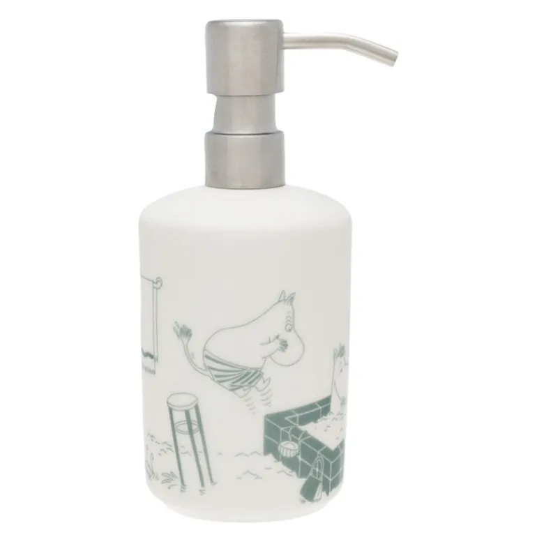 Mummi elsker å bade! Denne sjarmerende såpedispenseren med «badetid»-tema fra MoominArabia er et nydelig tillegg til baderomsinnredningen din. Denne lekne såpepumpen er laget av høykvalitets keramikk og er både praktisk og dekorativ. Historien bak designet tar oss med til når Mummifamilien ferierer på den franske rivieraen og bor på et luksushotell. Badekaret på rommet deres er så stort at Mummimamma beskriver det som et privat basseng! Denne såpepumpen fanger den luksuriøse og glade atmosfæren til eventyrene deres og tilfører et snev av mummimagi til badet ditt. Perfekt for å gjøre hverdagsrutinene litt morsommere.