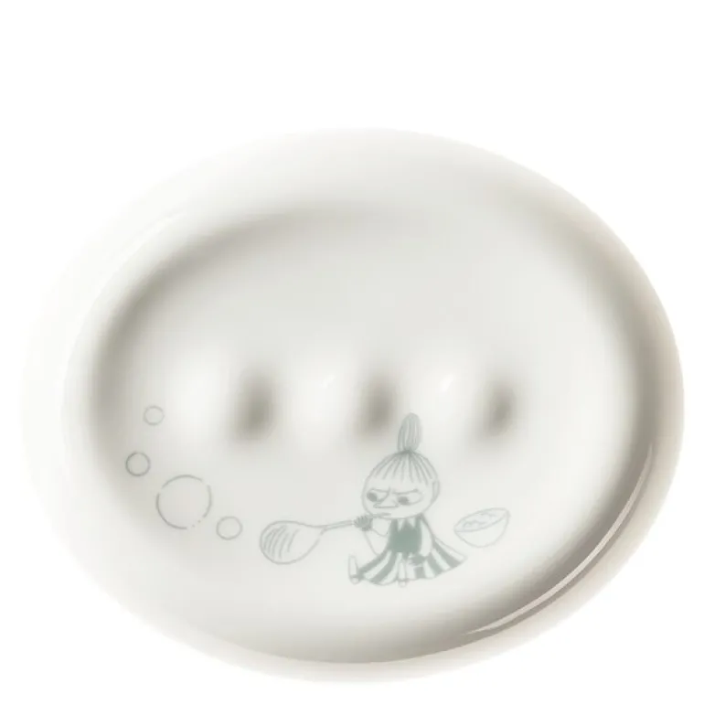 Mummi såpeskål i badestund-motivet fra MoominArabia fanger det stille øyeblikket når Lille My, midt i alt familiekaoset, nyter litt alenetid med å blåse bobler. Disse nye lekne keramiske baderomstilbehørene er et herlig tillegg til Moomin Arabia-hjemmekolleksjonen.