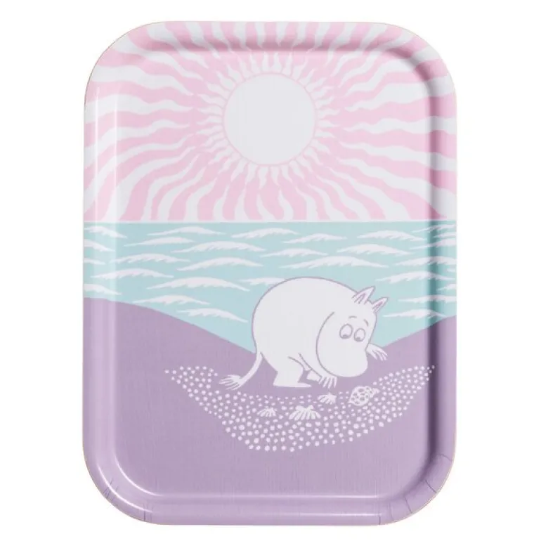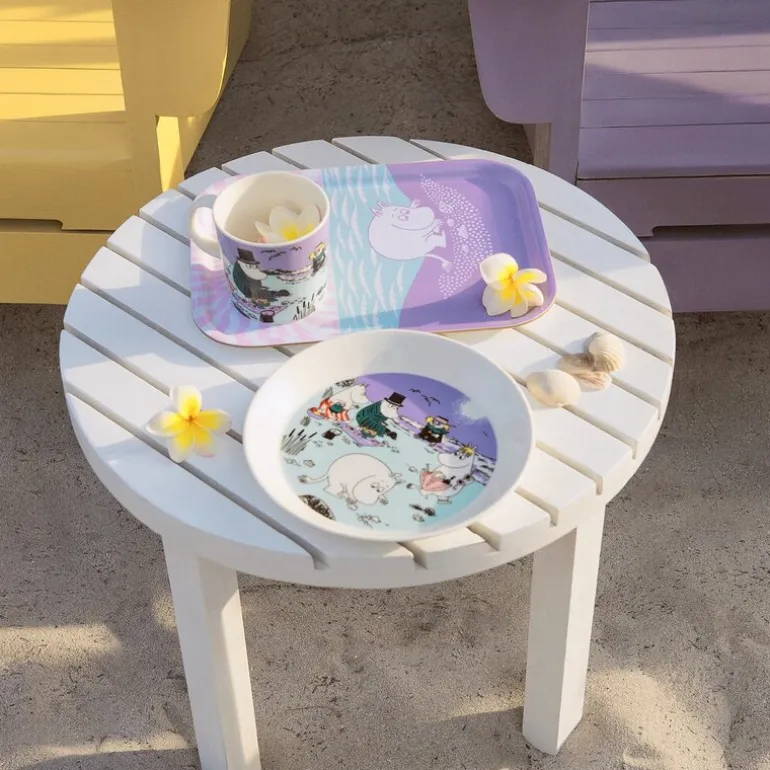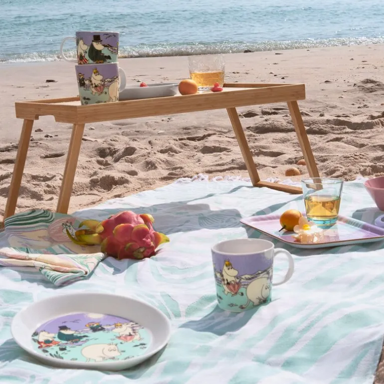 Arabia Mummi serveringsbrett 27×20 cm Stranddag kombinerer funksjonalitet med nostalgisk design. Brettet skildrer mummitrollenes piknik på stranden, med livlige illustrasjoner basert på Tove Janssons klassiske tegninger. Det er en historie om vennskap og glede som reflekteres i hver detalj.