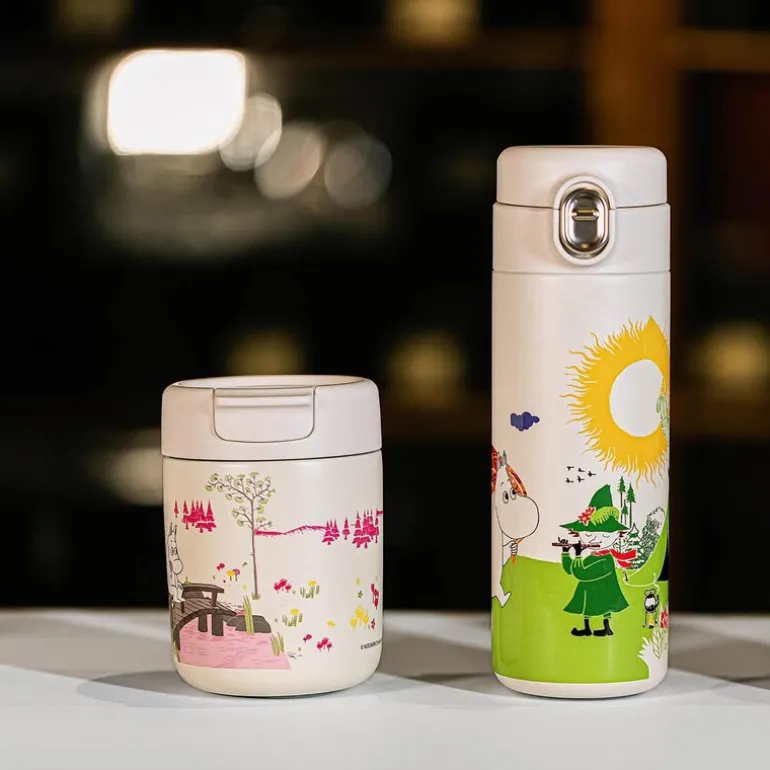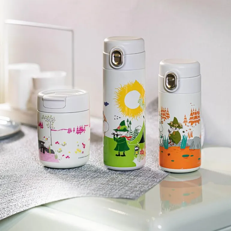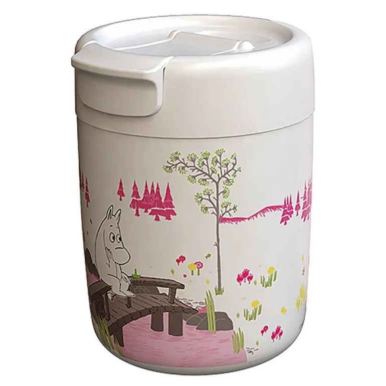 Mummi termokopp 32 cl i rosa og hvit fra Moomin kombinerer sjarmerende design med praktisk funksjon. Med preget motiv fra Mummi-universet og en kapasitet på 320 ml, passer den perfekt til både varme og kalde drikker. Det robuste rustfrie stålet sørger for god temperaturbevaring og lang holdbarhet.