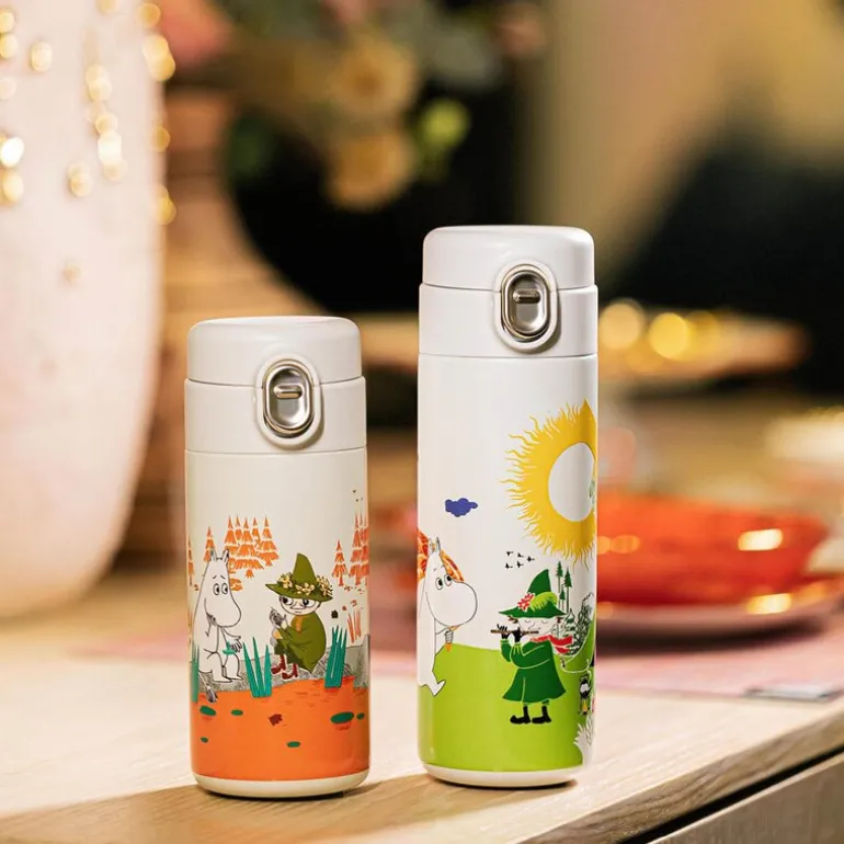 Mummi termokopp 42 cl i grønn og hvit fra Moomin kombinerer sjarmerende design med praktisk funksjon. Med preget motiv fra Mummi-universet og en kapasitet på 420 ml, passer den perfekt til både varme og kalde drikker. Det robuste rustfrie stålet sørger for god temperaturbevaring og lang holdbarhet.