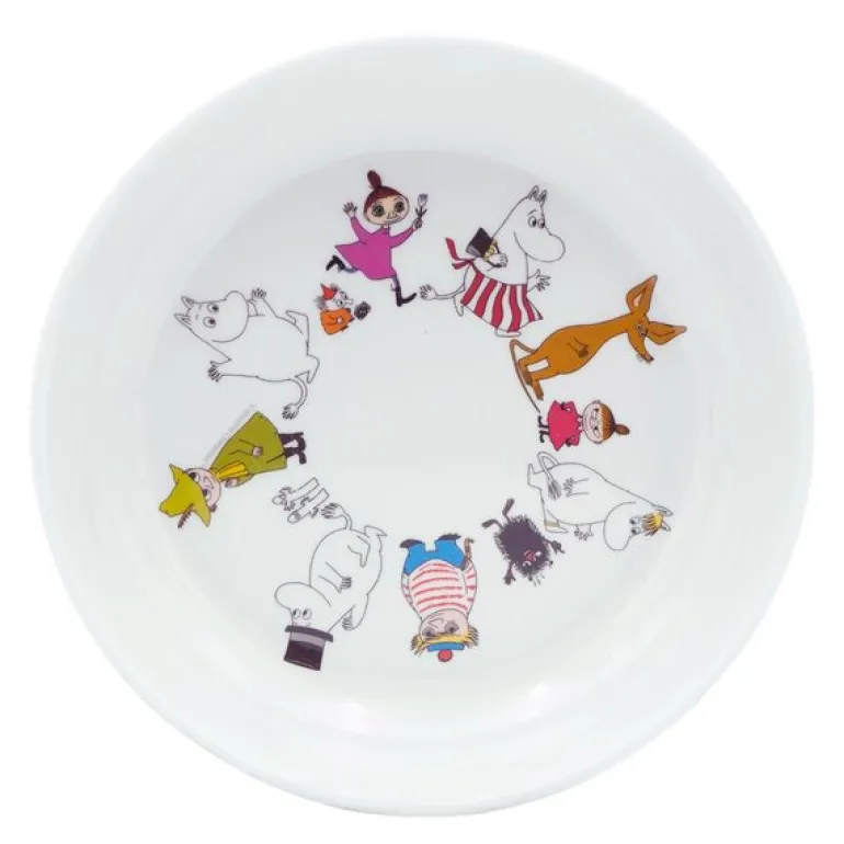 Mummifamilien dyp tallerken på 17 cm i melamin er en sjarmerende og praktisk tallerken perfekt for de yngste i familien. Med et livlig motiv av Mummifamilien på en hvit bakgrunn, gjør denne tallerkenen måltidene morsomme og engasjerende. Den er lett og slitesterk, noe som gjør den enkel å håndtere og ideell for små barnehender.