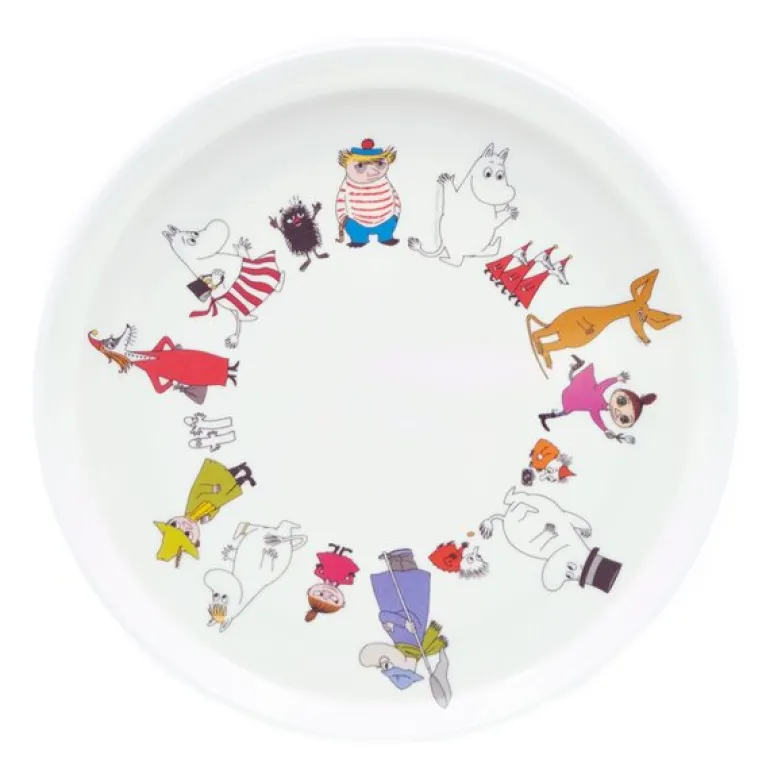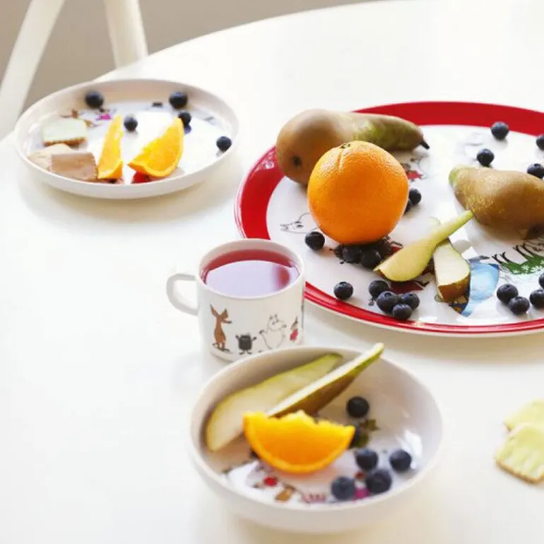 Mummifamilien tallerken på 20 cm i melamin er en sjarmerende og funksjonell tallerken som gjør måltidene ekstra morsomme for de yngste i familien. Dekorert med et koselig motiv av Mummifamilien på en hvit bakgrunn, bringer denne tallerkenen en dose glede og farge til matbordet.