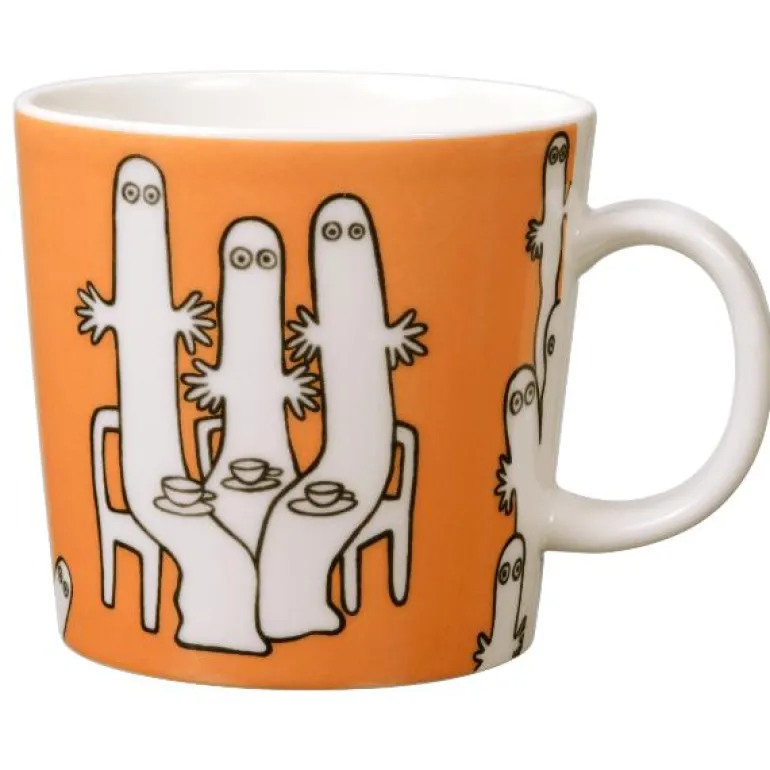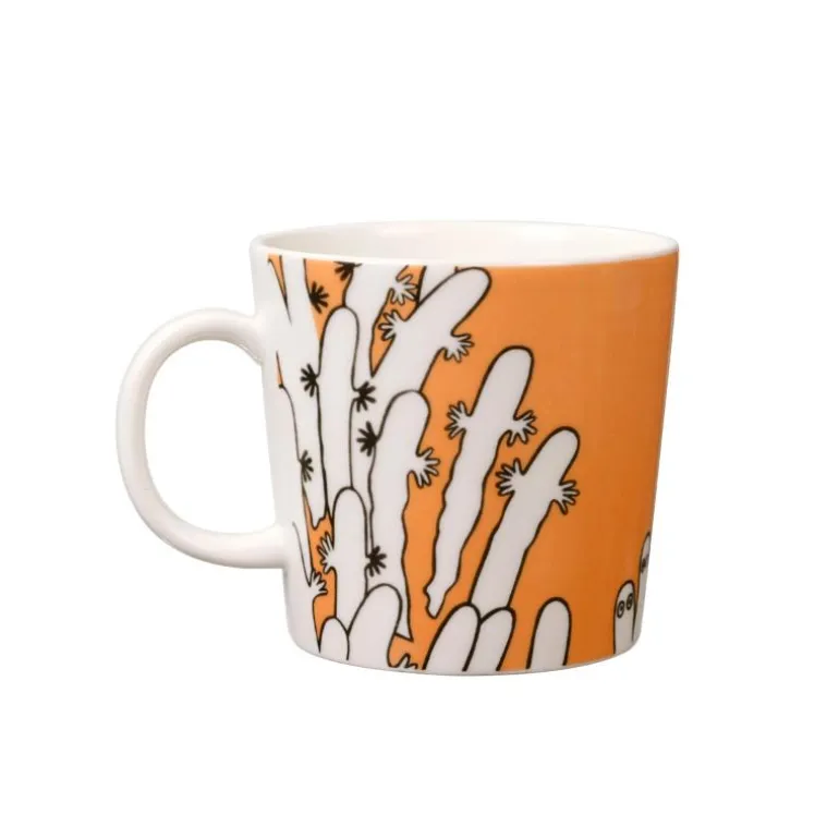 MoominArabia mummikopp 0,3L Hattifnattene er et flott og fargerikt krus med fantastiske motiv fra Mummidalen. Kruset er laget av vitroporselen og er dekorert med Mumin-figurene Hattifnattene. Hattifnattene er kjent for å være uoppmerksomme og nonchalante, de bryr seg ikke om hva andre sier og tenker. De beveger seg lydløst i store grupper og trenger verken å spise eller sove. Noen tror de er onde, men de er egentlig bare spesielle.