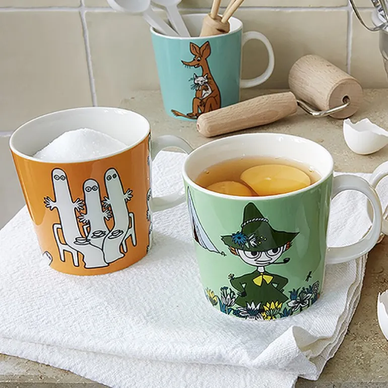 Dette kruset er en del av Moomin Classics-serien, designet av den talentfulle Tove Slotte. Serien er inspirert av de originale Mummitegningene og fanger essensen av Mummidalen på en fantastisk måte. Samle hele serien av MoominByArabia-produkter og skap din eget Mummidal i kjøkkenskapet ditt.