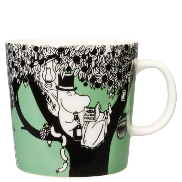 Mummikopp 40 cl grønn fra MoominArabia er det perfekte tillegget til din samling av Mummikopper. Dette vakre kruset er inspirert av en tegneseriehistorie der karakterene i Mummidalen begynner å leve fritt og i harmoni med naturen. Mummipappa finner sin frihet i et tre og blir ett med omgivelsene. Dette motivet bringer med seg en følelse av fred og bekymringsløshet.