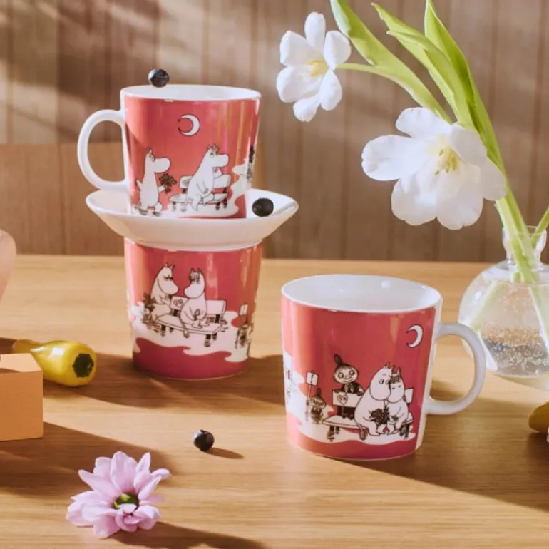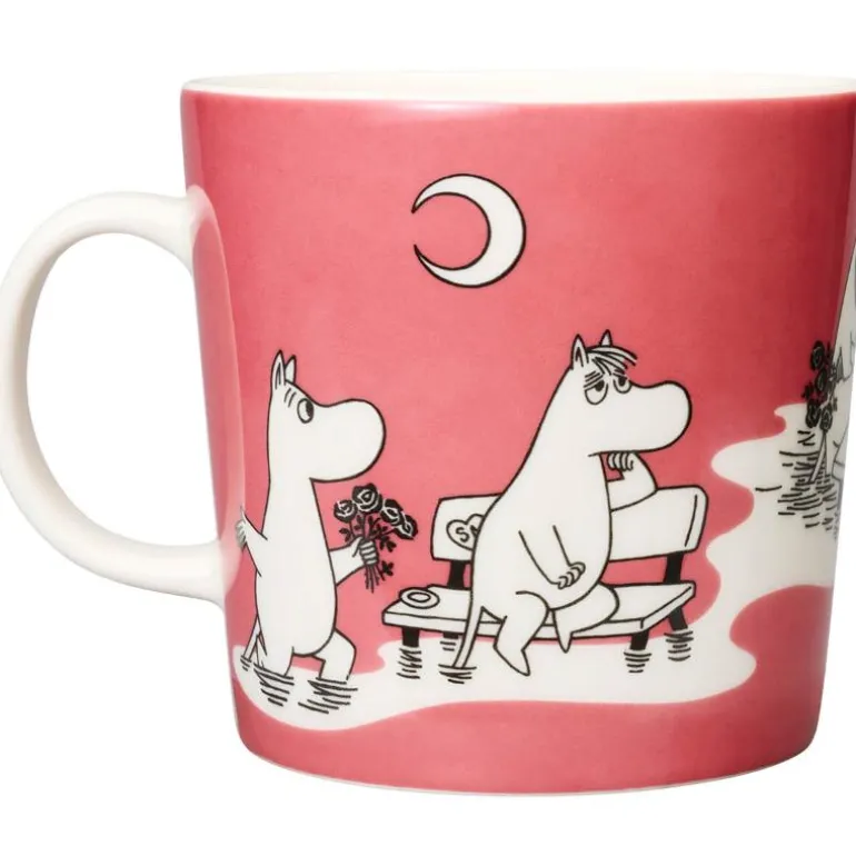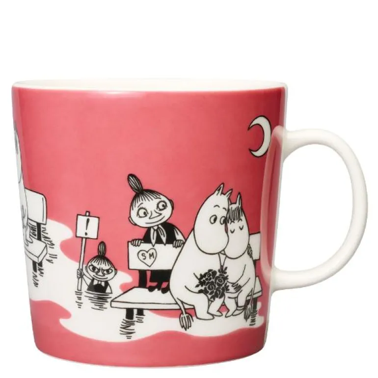 MoominArabia Mummikopp rosa er en flott kopp med fargerikt motiv fra Mummiuniverset. Denne koppen er designet i Teema-form og har en kapasitet på 40 cl. Motivet på koppen er inspirert av en tegneserie der Mummitrollet blir forelsket i teaterets Primadonna. Mummifamilien inviterer Primadonna til å bo hos dem, noe som gjør Snorkfrøken både trist og sjalu. Men til slutt vinner teaterets sterke mann, Emeraldo, Primadonnaens hjerte.