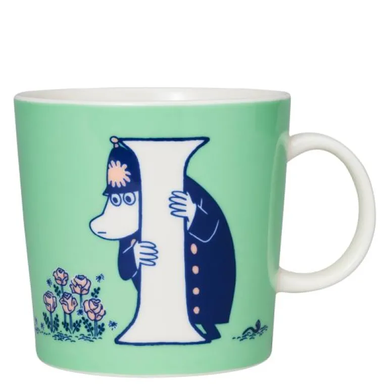Mummikopp 40 cl I fra MoominArabias ABC kolleksjon. På I-kurset sprer Dr. Hatter merkelige ideer blant beboerne i Mummidalen. Inspektøren tror noen spionerer på ham på grunn av noen roser, og Fjomsedyret bruker en paraply selv om solen skinner. Som vanlig vet Mummimamma hvordan hun skal håndtere situasjonen. Illustrasjonen er basert på tegneserien «Fjomsedyrets frieri».