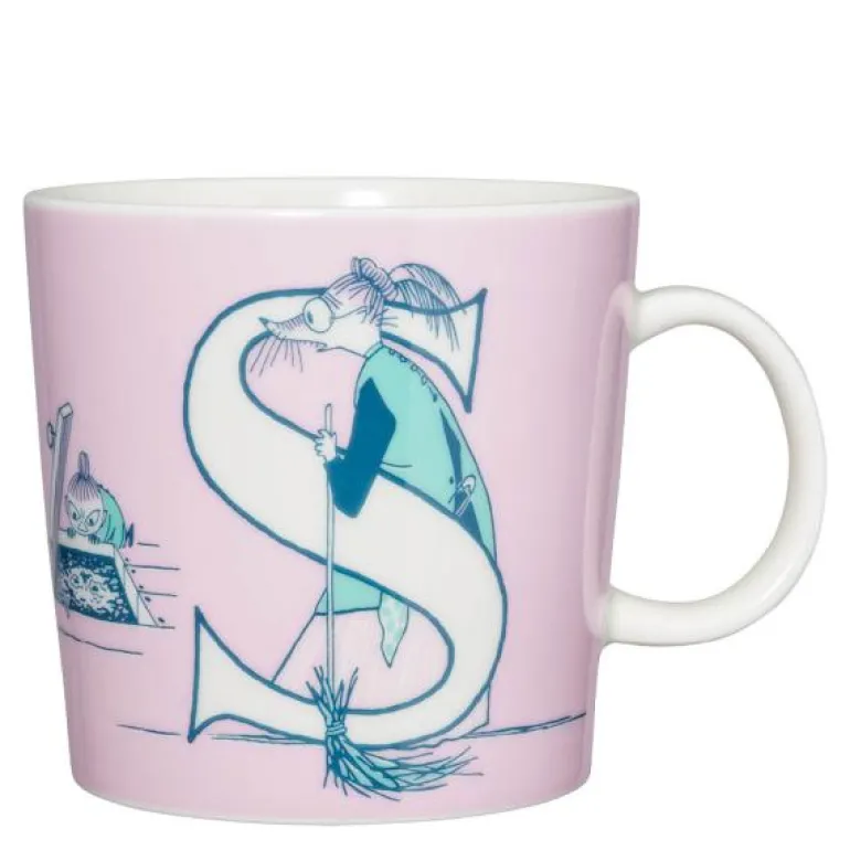 Dette kruset er en del av MoominArabias alfabetsamling hvor mummikoppene er dekorert med bokstaver og mummiillustrasjoner. Bokstavkruset har et unikt mummimotiv basert på Tove Janssons elskede Mummitroll og hans familie.
