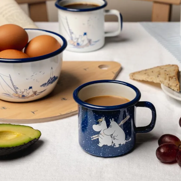 Emaljekoppen har en myk kantovergang for å skape en behagelig overflate å drikke fra. Emaljekoppen er godkjent for bruk på komfyr, induksjonsplate, ovnen og i oppvaskmaskin. Ikke godkjent for bruk i mikrobølgeovn.