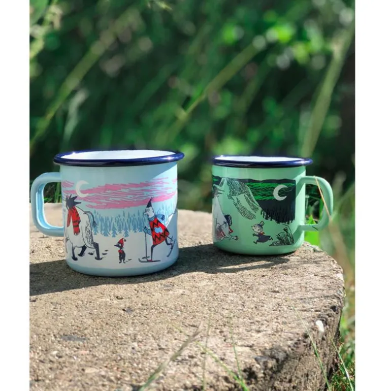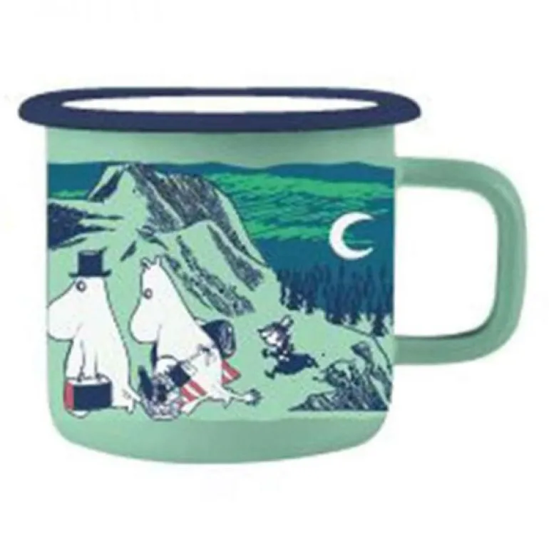 Grønn emaljekopp i serien Mummi, med motivet Norsk Sommer. Emaljekoppen har en myk kantovergang for å skape en behagelig overflate å drikke fra. Emaljekoppen er godkjent for bruk på komfyr, induksjonsplate, ovnen og i oppvaskmaskin. Ikke godkjent for bruk i mikrobølgeovn.