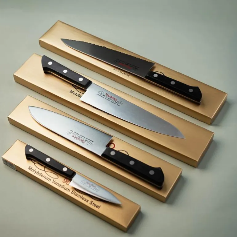 Masahiro MV serien består av en serie klassiske kniver som kombinerer det europeiske uttrykket med det japanske håndverk og tradisjon. En kniv skapt av profesjonelle, for folket og elsket av kokkene. MV serien har det karakteristiske patenterte stålet MBS 26. Dette stålet er komponert både med tanke på eggstålets holdbarhet og dets evne til å tåle vedlikehold. MV serien er den mest solgte serien fra Masahiro i Norden.