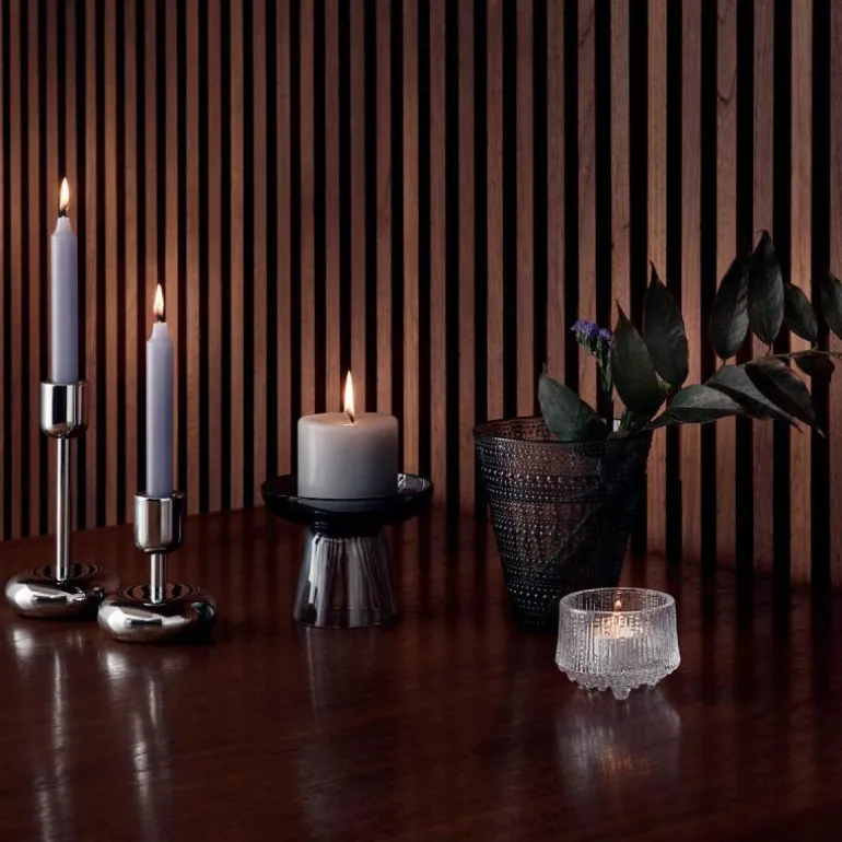 Nappula lysestake 183mm stål. Design Matti Klenell 2012.Håndvask anbefales. Nappula-lysestaken ble født når formgiver Matti Klenell besøkte Nuutajärvi glassmuseum og ble forelsket i et bord med en uvanlig form. Inspirert av bordets karakteristiske design, skapte han et utvalg av moderne lysestaker. Lysestakene finnes i messing og i pulverlakkert stål med utvalgte farger. Nappula kombinerer Klenells kjærlighet til både vintage og moderne former og representerer et sterkt nordisk designspråk som er typisk for Matti Klenell. Foruten å være utrolig praktiske er de allerede på vei mot ikonstatus. Håndvask anbefales – messing rengjøres med messingpuss. Designer Matti Klenell.