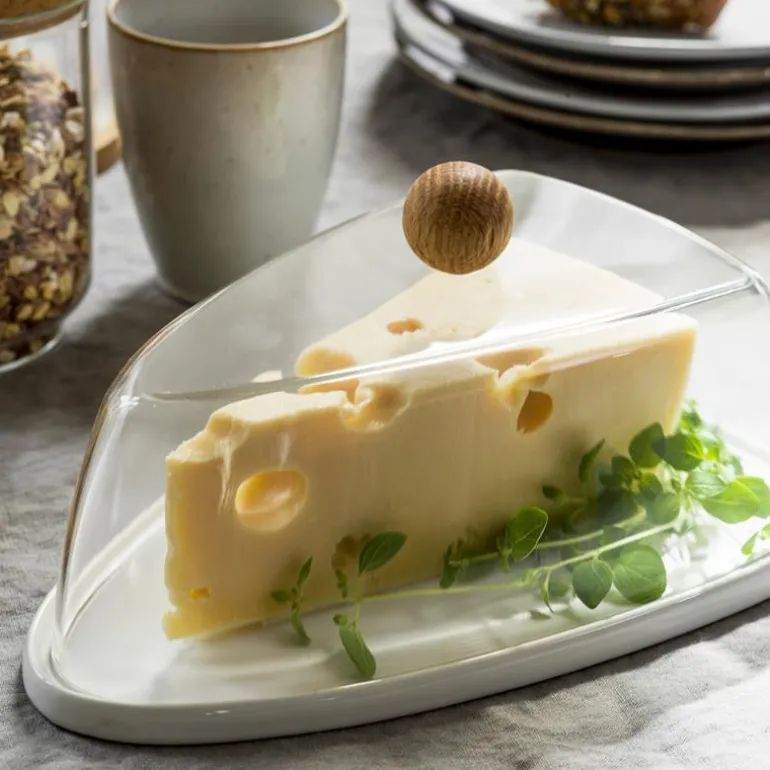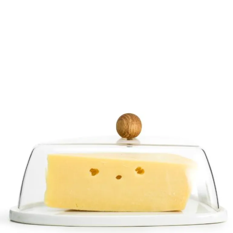 Dekorativ osteklokke med eikeknott, Nature, fra Sagaform. Endelig en skikkelig stilig og praktisk ostekurv. Med bunn av steintøy som er lett å maskinvaske og en kopp i akrylplast. Designet med eikekulen gjør bikuben lett å gripe og løfte av, en fremtidig klassiker å regne med!
