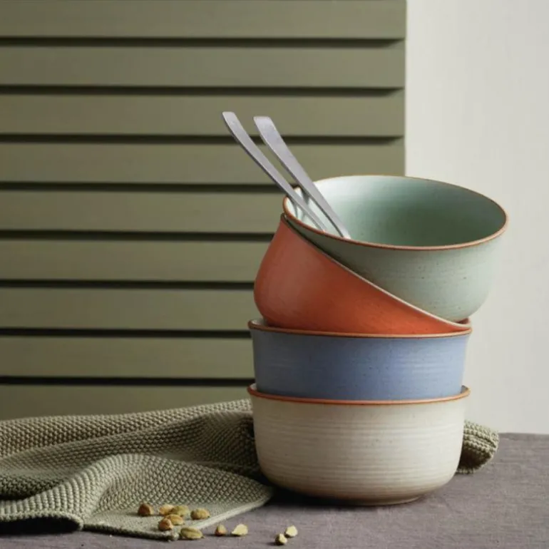 Nature skål 15 cm leaf fra Thomas. Thomas Clay imponerer med sin funksjonalitet og den naturlige følelsen av steintøy. Den rillede strukturen og de svarte flekkene i materialet gir en autentisk karakter med et håndlaget utseende. Årsaken til prikkene i glasuren er jerninnslag som smelter under brenneprosessen og gir keramikken det spesielle utseende.