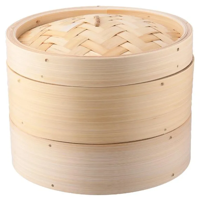 2-lags dampkoker produsert av flettet bambus. Ideel for damping av både grønnsaker, kjøtt og melboller på tradisjonelt asiatisk vis.Ved å dampe maten, bevarer du mer av næringsstoffene som gjør maten sunnere og mersmakfull. Dampurven har 2 lag som lar deg tilberede flere matvarer samtidig.Plasser dampkurven i en gryte eller liten stekepanne med en liten mengde vann.Stekepannen/gryten skal være liten nok til at dampkurven ikke står i bunnen. Den skal ikke kokes, bare dampes. Når vannet koker, passerer dampen gjennom risten. Tilberedningstiden avhenger av hva man ønsker å dampe. Ved tilberedning av dumplings, vil det ta rundt 10-12 min. Bruk gjerne litt matpapir på risten for å unngå at maten fester seg fast.Rengjøres for hånd med varmt vann og mild såpe. Tørk godt av.Bruksmerker kan oppstå da materialet er naturlig, men vil ikke påvirke produktets funksjon.Bør ikke legges i kaldt vann etter bruk, da dette kan gi bambusen temperatursjokk og lede til atformene ikke passer sammen.