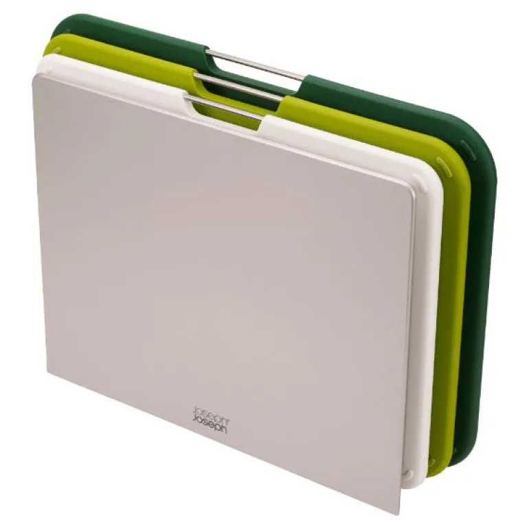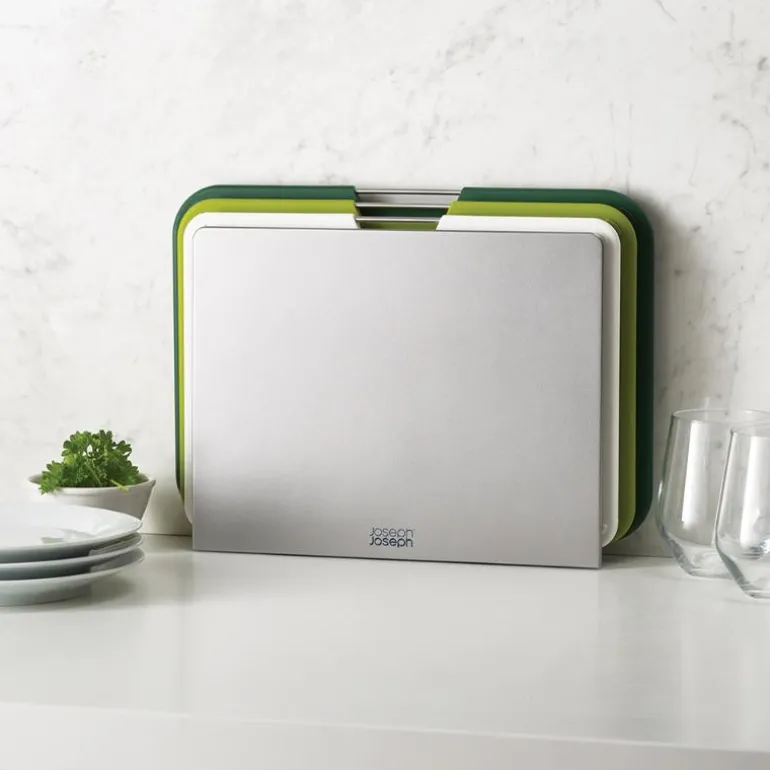 Hvert av skjærebrettene har hjørner som gir stabilitet på benken og kutteflater som er skånsomme mot knivene dine. Denne kombinasjonen av funksjonalitet og design gjør settet til et flott tillegg til ethvert kjøkken.