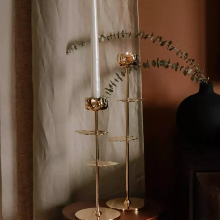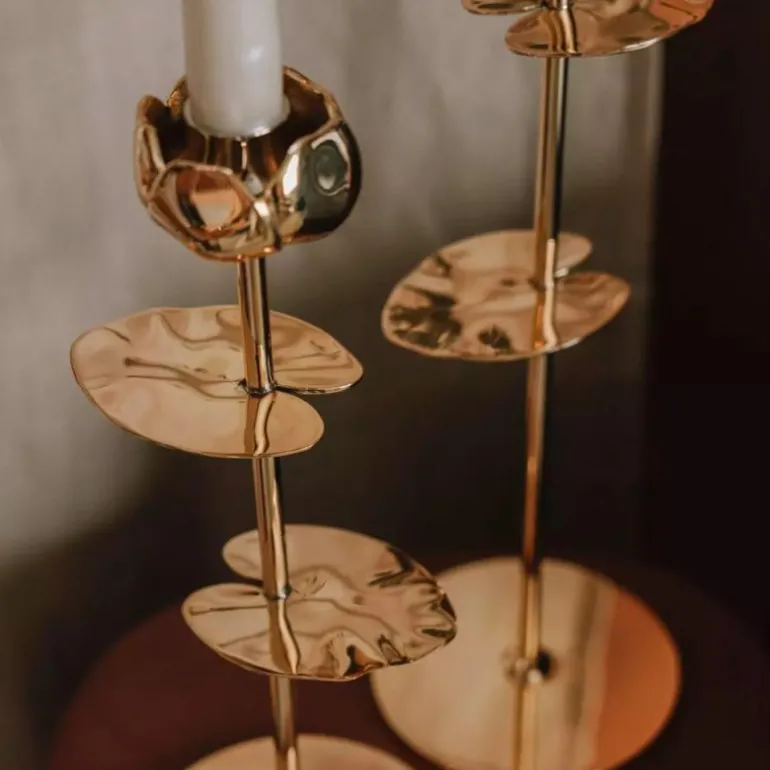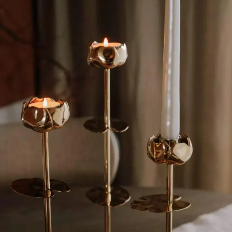 Ninfea Alta er vakker alene og kan bli et effektfull stilleben i gruppe med de andre størrelsene. Den kommer med innsats for kronelys, og kan derfor brukes med telys eller kronelys – etter eget ønske.