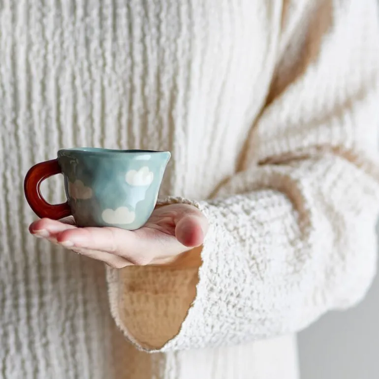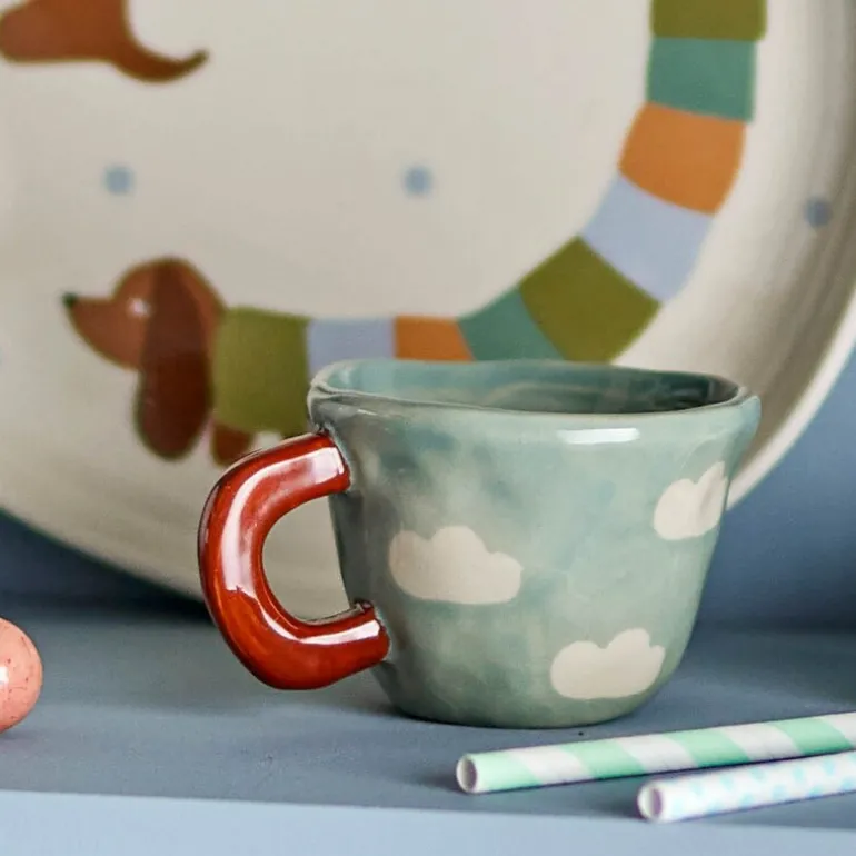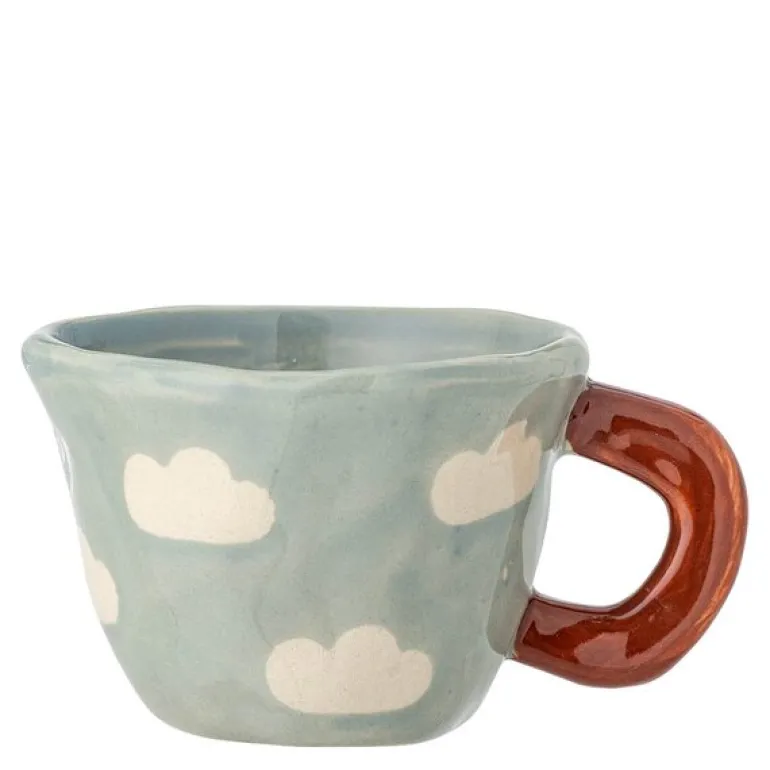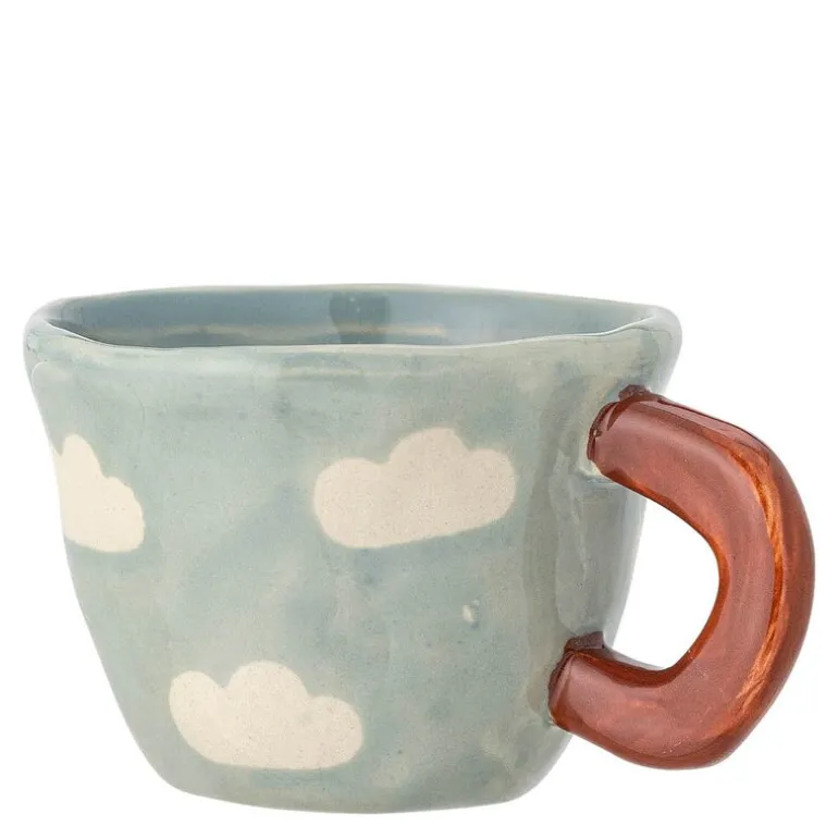 Nini krus 10 cl i lyseblått fra Bloomingville MINI er laget i steintøy og har et drømmende designet uttrykk med dekorative skyer i myke nyanser. Perfekt til varm kakao for de små eller en espresso til de voksne – dette kruset får deg til å smile, selv på regnværsdager.