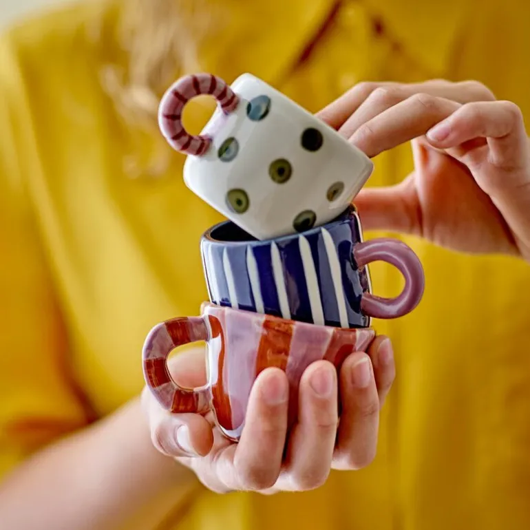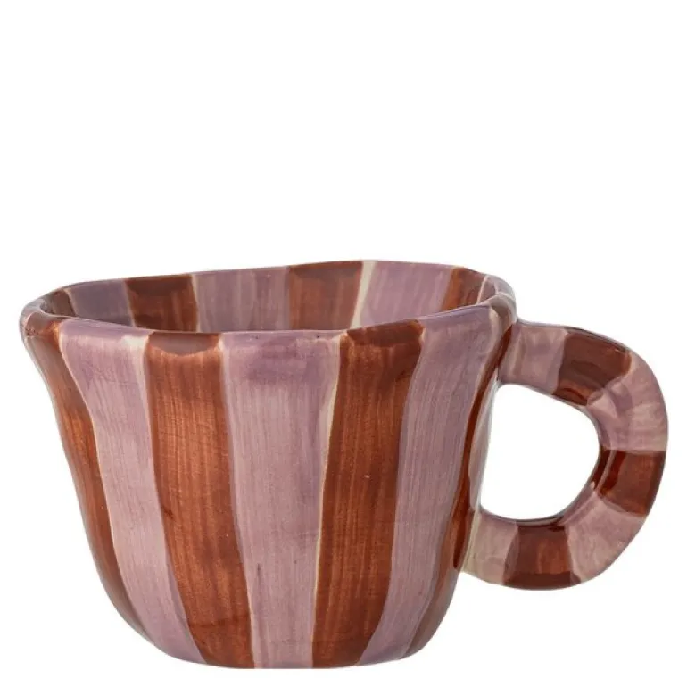 Nini krus 10 cl i rosa og rød fra Bloomingville MINI er laget av steintøy og har et sjarmerende designet uttrykk med håndmalte striper i varme nyanser.