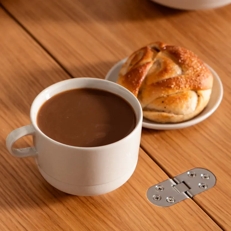Former og finish er myke, og hver enkelt del kan brukes på forskjellige måter — kopp uten håndtak fungerer like godt som bolle, og bollen kan brukes til å servere en suppe eller fungere som en tallerken.
