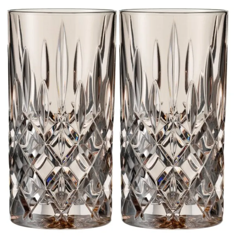Noblesse Colour longdrinkglass fra NACHTMANN i den elegante taupe-fargen gir enhver drikkeopplevelse et sofistikert og luksuriøst preg. Med en kapasitet på 39,5 cl kombinerer disse glassene et tidløst fasettert design med en moderne rosé-farget finish som tilfører et unikt uttrykk til borddekkingen din. Laget av krystallglass av høy kvalitet, skaper glassene en gnistrende effekt når lyset treffer dem, og gir et visuelt slående inntrykk ved enhver anledning.