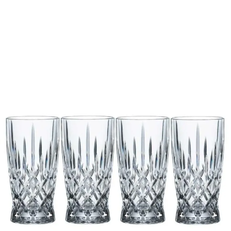 Sett med fire stk eksklusive brusglass i krystall fra den tyske produsenten Nachtmann; en del av Riedel-gruppen. Unn deg litt luksus i hverdagen. Den klassiske slipingen er både tidløs og moderne. Blyfritt krystall gjør at klassene har en eksepsjonell klarhet og klangen bare ekte krystallglass kan gi. Derfor sier vi «Nachtmann- luxury everyday»! Brusglassene rommer 350 ml og er 146 mm høye.