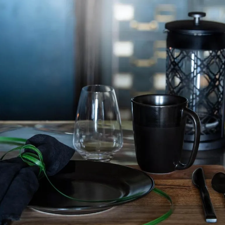 NOIR, designet av interiørdesigneren Halvor Bakke, er fløyelsmyk og mystisk som en forførende parisisk kveld. Inspirasjonen har designeren hentet fra en av sine mange reiser til Le Marais i Paris, et trendy område med særpreg av naturmaterialer, mørk eleganse og fløyelsmyke kvelder der du får fantastiske matopplevelser på Michelin-restauranter som er verdenskjent for sin franske gourmetmat. Det er denne følelsen Halvor Bakke ønsker å videreføre med det nye serviset NOIR. Selv er han glad i både å lage mat og servere mat. Han er opptatt av å presentere mat på en delikat måte som hever matopplevelsen. Sort porselen fremhever maten på en helt unik måte. Maten får spille hovedrollen og slipper å kjempe mot mønster og dekorer. Man spiser like mye med øynene som med ganen.