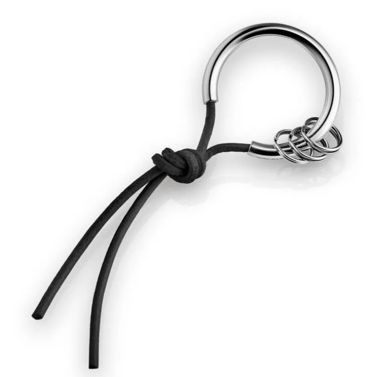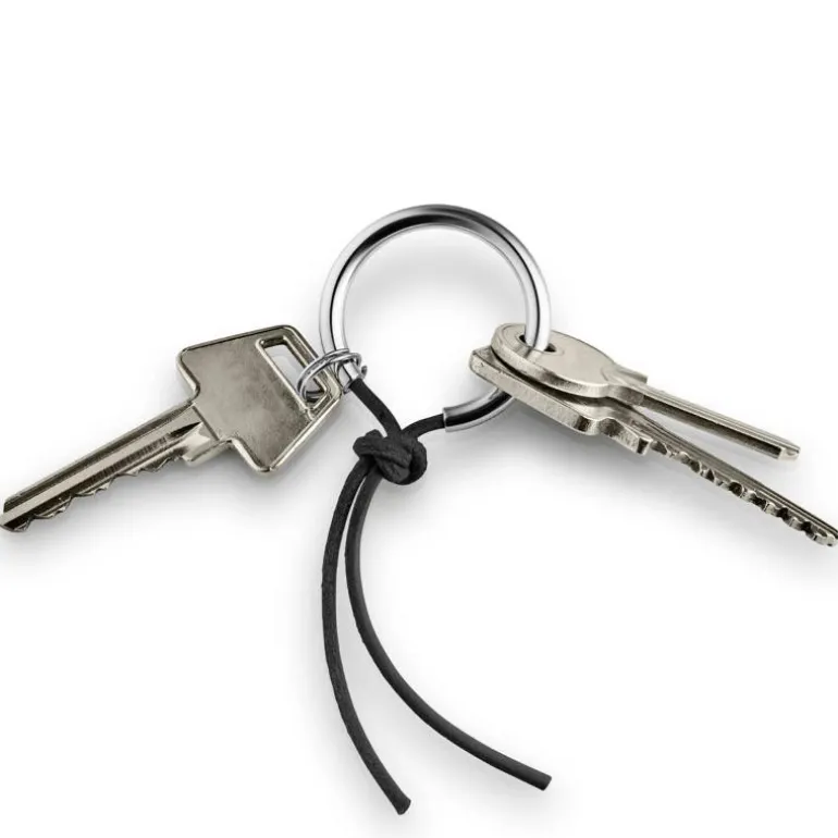 Når du vil legge til eller fjerne nøkler, løsner du enkelt knuten. Tre mindre tilleggsringer følger med, noe som gir fleksibilitet til å organisere hus-, bil- og kontornøkler på en ryddig måte.
