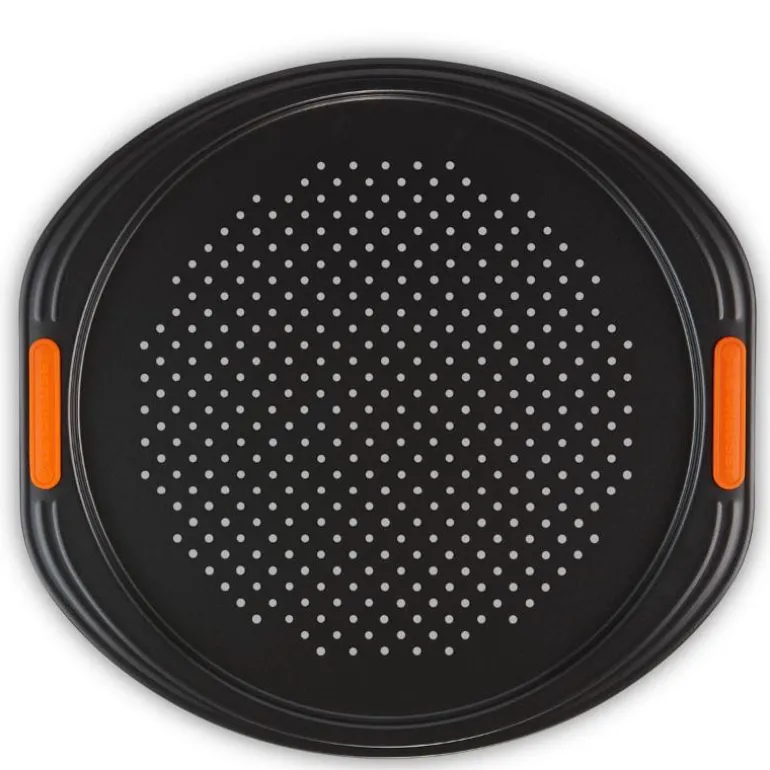 Den perforerte bunnen i pizzaplaten gjør at luften sirkulerer jevnt, noe som gir en perfekt stekt pizzabunn med gyllen skorpe. Pizzaplaten er laget av tykt karbonstål og belagt med PFOA-fritt non-stick-belegg, som gjør et maten slipper lett.