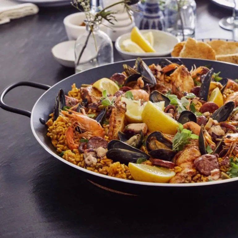 Beka sin svarte paellapanne på 38 cm er perfekt for deg som vil servere paella på ekte spansk vis. Med god plass i pannen kan du enkelt lage både hverdagsmåltider og helgemat til hele familien eller et større selskap.