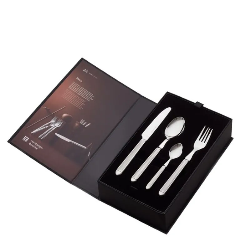 Med sitt elegante design og funksjonelle utforming er Nora Bestikksett med 24 deler et utmerket valg for den som setter pris på kvalitet og estetikk. Designet av Odd Leikvoll i 2001, er dette bestikket en klassiker fra Hardanger Bestikk, kjent for sitt solide håndverk og sin tidløse stil.