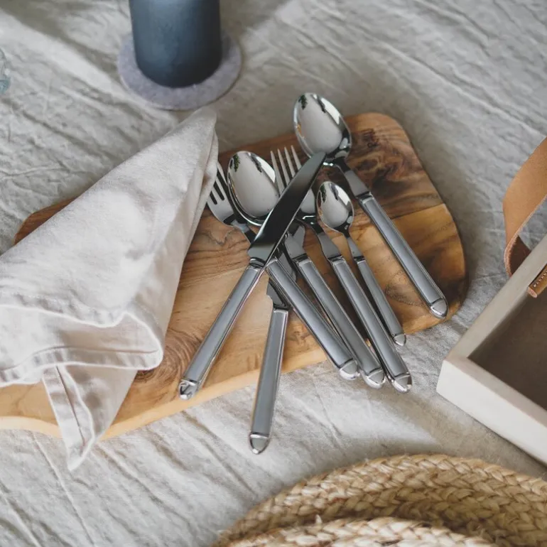 Settet inneholder seks spisekniver (22 cm), seks spisegafler (21 cm), seks spiseskjeer (21 cm) og seks teskjeer (14,1 cm), alt laget i 18/10 rustfritt stål som er både holdbart og oppvaskmaskinsikkert.