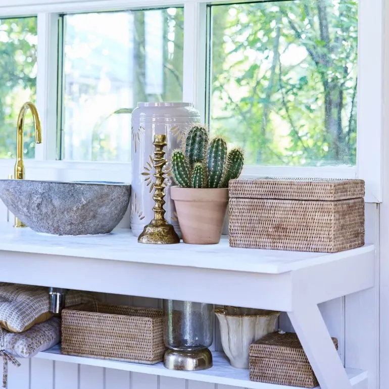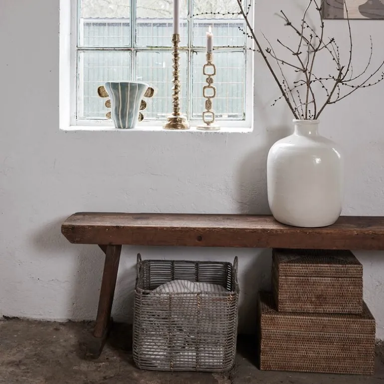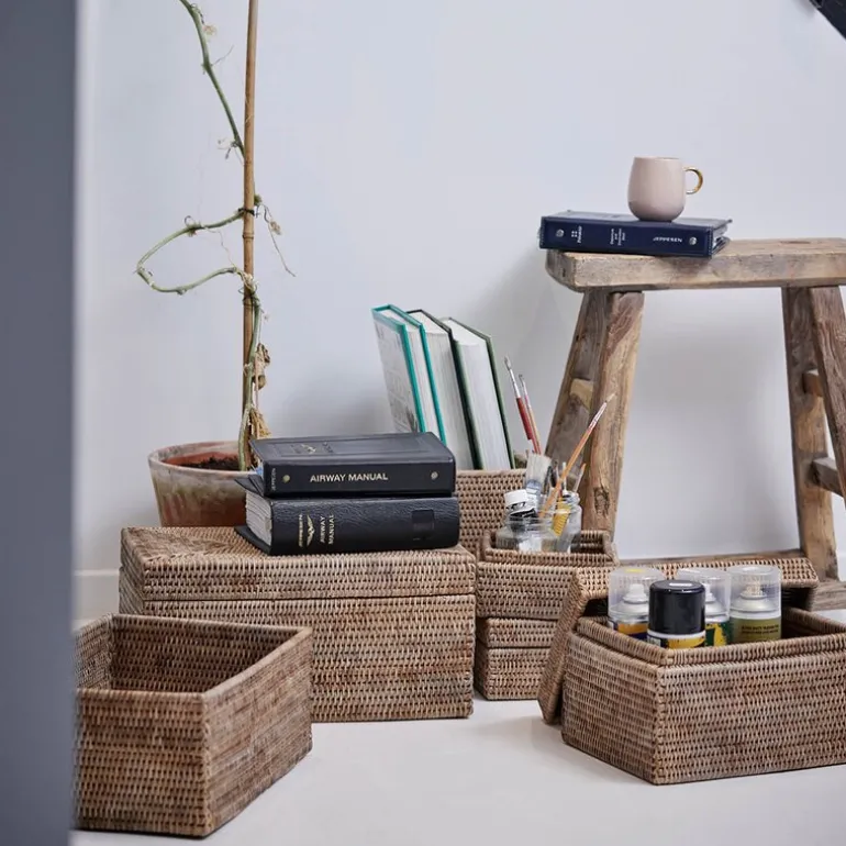 Perfekt til oppbevaring av småting i stuen, på soverommet eller badet, samtidig som den tilfører en organisk og varm følelse til interiøret. Norah-serien er kjent for sin bruk av rotting og bambus – materialer som vokser raskt og gir en solid, men lett konstruksjon.