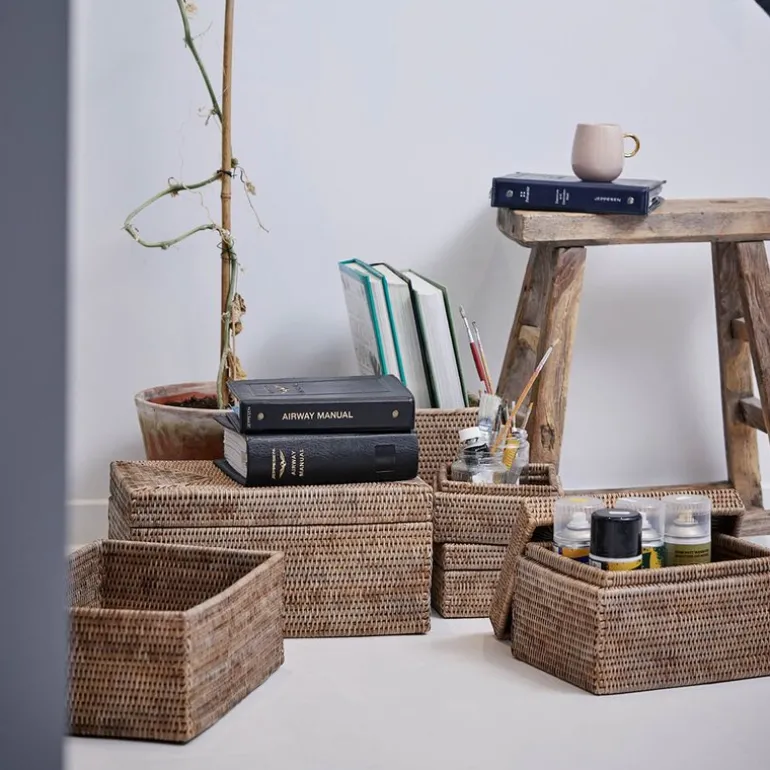 Perfekt til oppbevaring av småting i stuen, på soverommet eller badet, samtidig som den tilfører en organisk og varm følelse til interiøret. Norah-serien er kjent for sin bruk av rotting og bambus – materialer som vokser raskt og gir en solid, men lett konstruksjon.