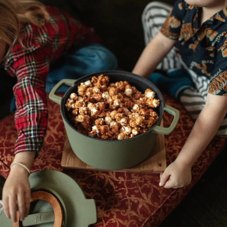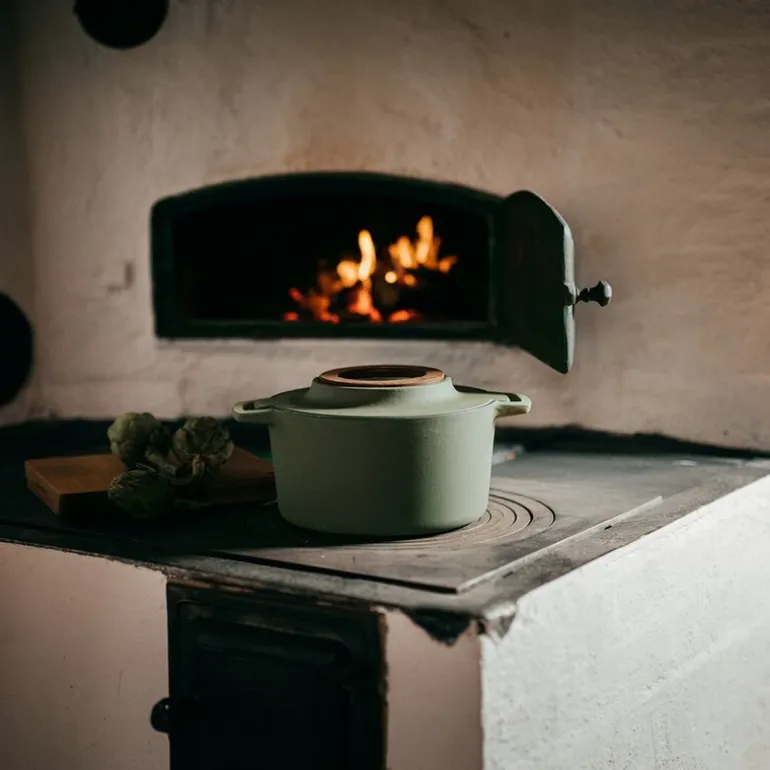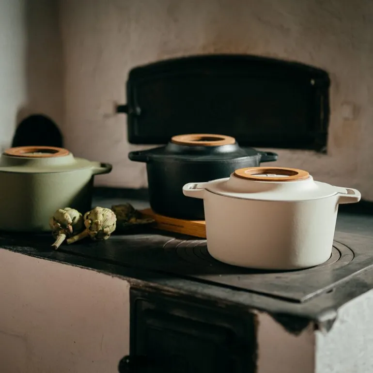Gryten kan brukes på alle koketopper, inkludert induksjon, og kommer med et praktisk underlag i finsk bjørk. Den tåler også temperaturer opp til 270 °C, enten på komfyren eller i ovnen. Husk å fjerne trefoten før ovnsbruk for å beskytte treverket. For å bevare kvaliteten over tid anbefales det håndvask.