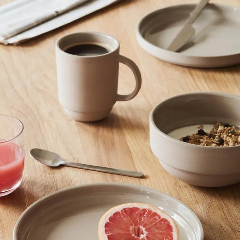 Krus med hank 30 cl i Nordic Bistro serien fra Broste Copenhagen.Den industrielle følelsen glattes ut av de myke kantene og perfekt formede håndtakene som gjør Nordic Bistro enkel å style i både minimalistiske og fargerike omgivelser. Den første inspirasjonen for kolleksjonen var den pulserende matscenen i København sentrum – men servisets allsidighet gjør det perfekt for uformelle middagsselskaper så vel som restaurantmåltider.Stablebare kopper og tallerkener laget av solid keramikk i en dyp, sandaktig beige er det siste tilskuddet til Nordic Bistro – et designsamarbeid mellom Broste Sopenhagen og interiørdesigner, Aurelién Barbry.