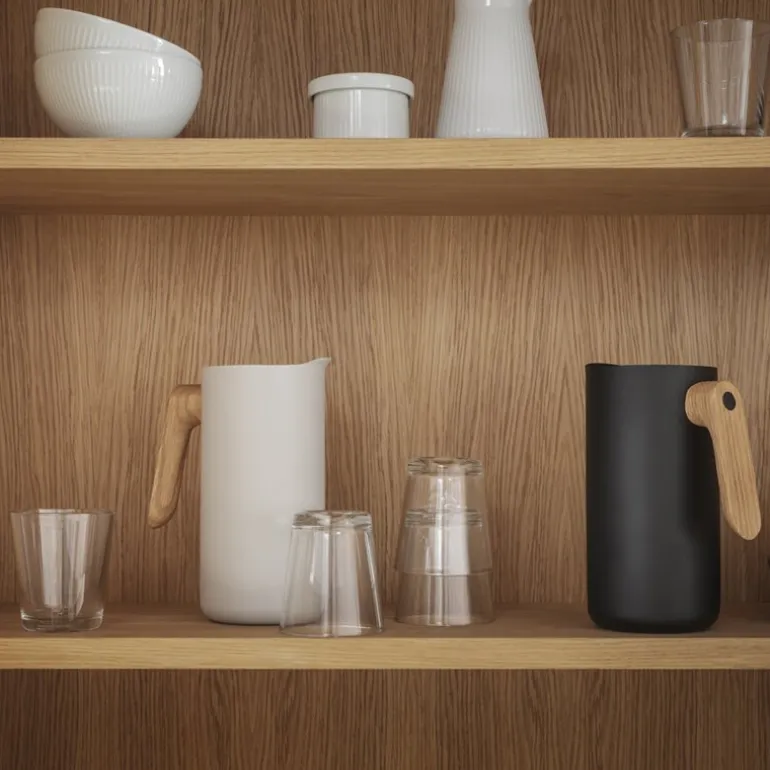 Det oljede eikehåndtaket gir et eksklusivt preg og en behagelig grep, samtidig som det tilfører en varm kontrast til kannens design. Perfekt både til servering og som en dekorativ detalj på bordet.