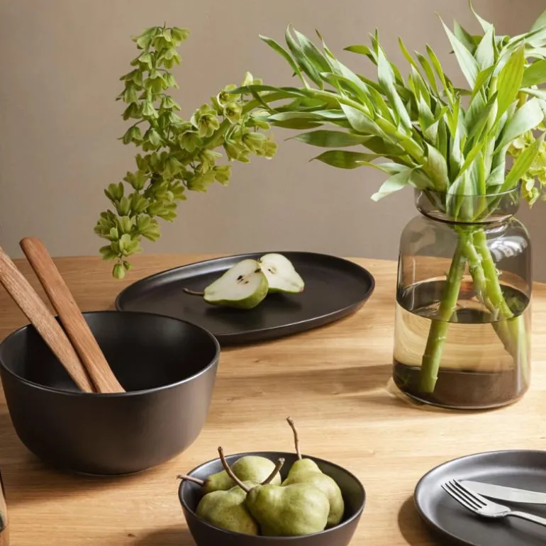 Oval tallerken i svart steintøy i enkelt og elegant uttrykk som passer til den avslappede nordiske livsstilen. Tallerkenen tåler hverdagsbruk med både oppvaskmaskin, fryser, stekeovn og mikrobølgeovn. Bruk også tallerkenen som serveringsfat.