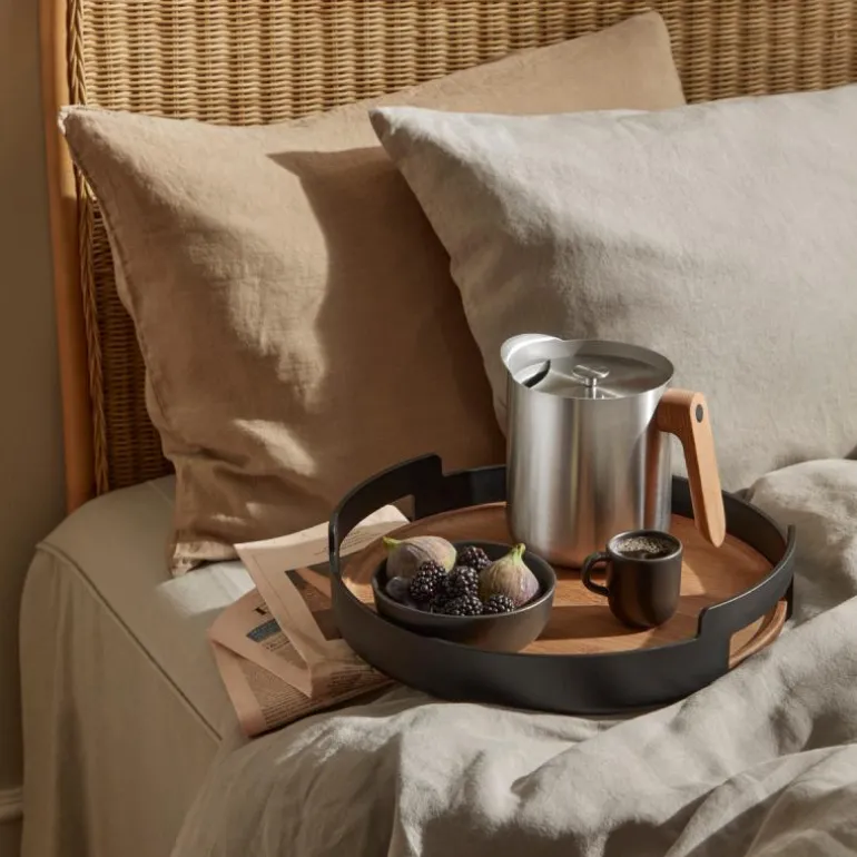 Med sin romslige design og høye kanter er dette brettet ideelt for servering av alt fra frokost på sengen til kaffe i stuen. De solide håndtakene gir ekstra stabilitet og trygghet ved flytting, slik at du enkelt kan transportere innholdet uten bekymring. Laget av FSC®️-sertifisert bambus, kombinerer brettet en naturlig følelse med bærekraftig produksjon. Den matte svarte finishen tilfører en moderne eleganse som passer perfekt inn i enhver livsstil og interiørstil.