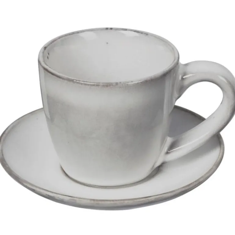 Espressokopp 5 cl med fat i Nordic Sand serien fra Broste Copenhagen. Bruk gjerne den fine espresso koppen med fat alene eller sammen med de andre servisedelene i den flotte Nordic Sand serien. Den kan med fordel også brukes i en herlig avslappet miks av de andre populære serivsene fra Broste Copenhagen.Nordic Sand har et organisk design i naturlige sandnyanser for et mykt og allsidig utseende. Fargen på glasuren kombinert med en distinkt keramisk finish, gir kolleksjonen et unikt uttrykk som minner om den uberegnelige sanden til de forblåste nordiske strendene. Designet er enkelt, rustikt og unektelig iøynefallende. Hver del har en unik kvalitet, ettersom brenningsprosessen etterlater glasuren med varierende teksturer og farger.